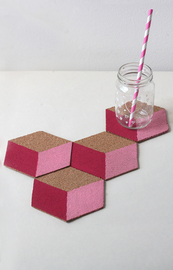 Estou tanto de entusiasmada, como de angustiada. Isto da falta de tempo, para fazer as coisas que verdadeiramente me fazem feliz, começa-me a afectar o mau humor , mas pior o Amor. Ando mesmo irritadiça, refilona, deprimida, saturada e sobretudo preocupada, com a forma como ando a viver esta Vida, que merecia tanto, tanto mais. Dói ainda mais, quando a maiúscula ( não sei se inconscientemente- ela diz que vê o futuro- me do) me começa a pedir para ser eu a ensinar-lhe as coisas, cá em casa. Mas que ela me percebe e sente, já eu percebi. E é delas e por elas que vou pensado e fazendo, estes fugazes instantes, que me vão dando fôlegos de sonhos e de esperança . Se ela está a dar os poliédros, então que se reinventem formas de os ver. Este é portanto um projecto simples, lúdico e que resulta em objectos lindos, práticos e tão nossos. A cortiça e os padrões dos azulejos que afinal: Oh mãe, mas isso são cubos!! <3